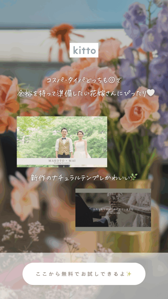 「時間がない」「おしゃれさも必要だけどコスパも重要」「ムービー作りが不安」という新郎様・新婦様にはとってもおすすめです!