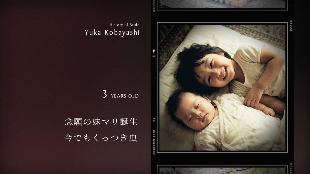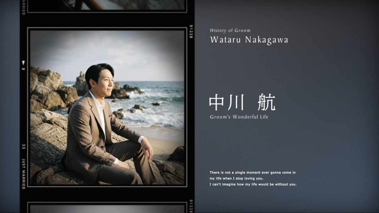 レトロなフィルム枠にお写真をのせて表示することでおふたりの当時の姿や記憶が懐かしく感動的な思い出としてよみがえります