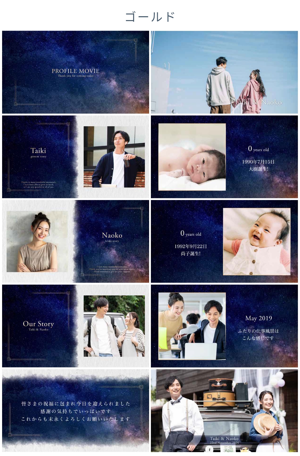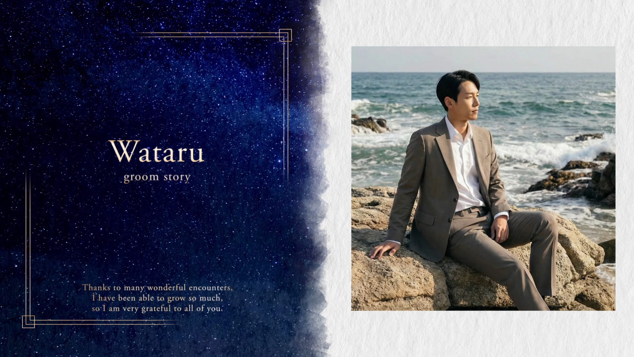新しい旅を始めるおふたりにとっての道しるべとなるように、と願いを込めたプロフィールムービーです