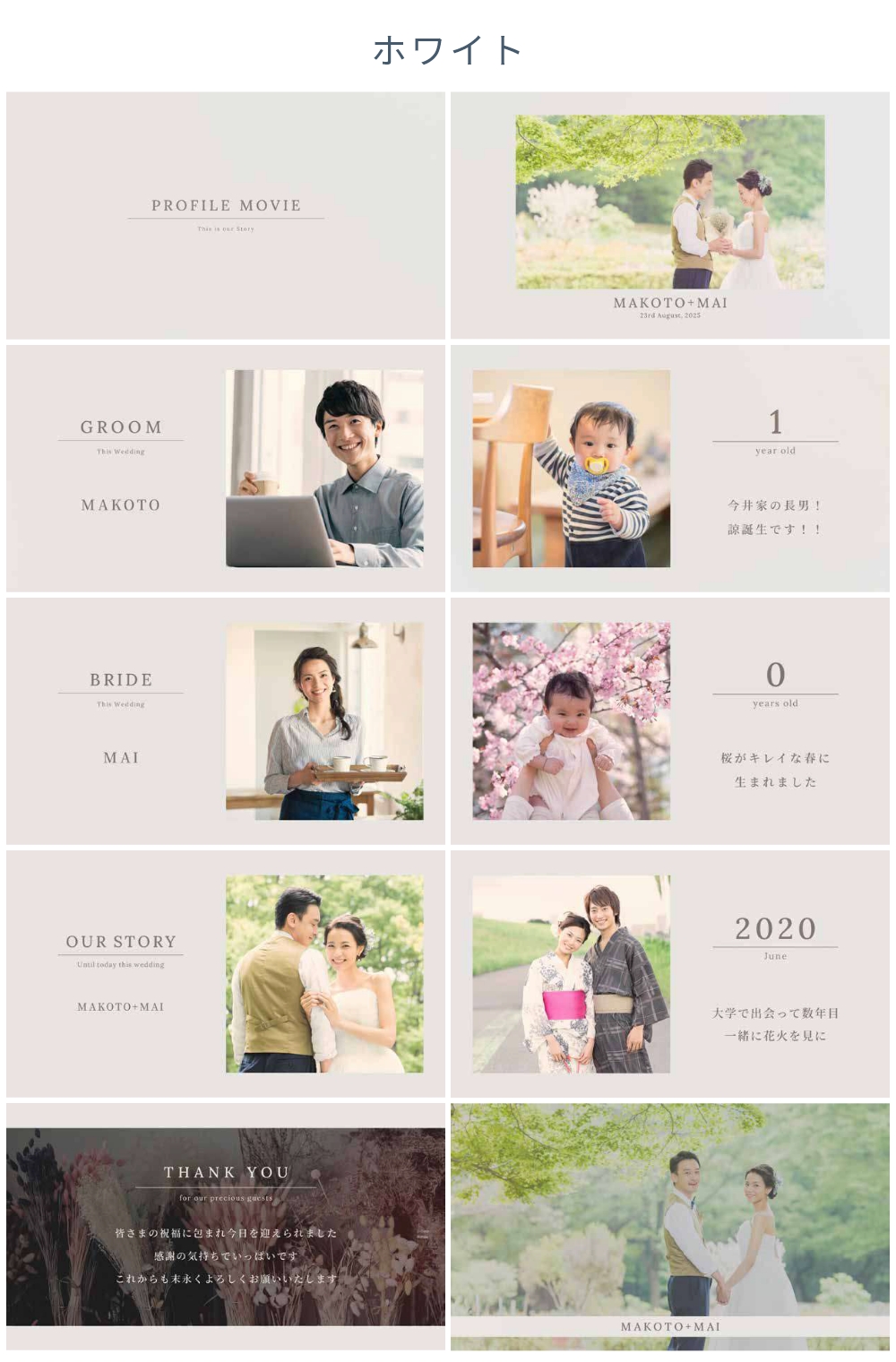 プロフィールムービー「ナチュラル」はニュアンスカラーを基調とした、ゆとりのあるシンプルなレイアウトのムービーです