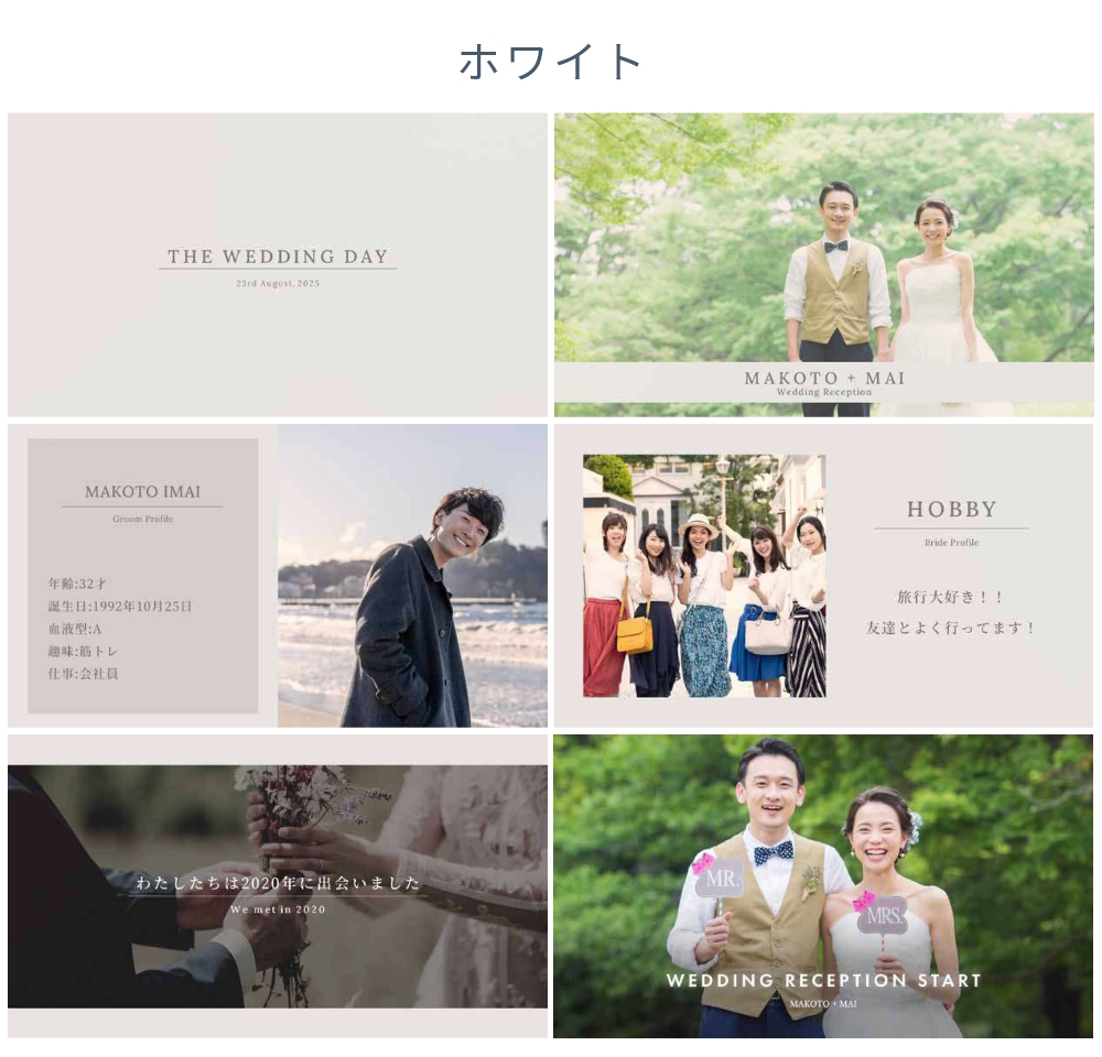 オープニングムービー「ナチュラル」はニュアンスカラーを基調とした、ゆとりのあるシンプルなレイアウトのムービーです